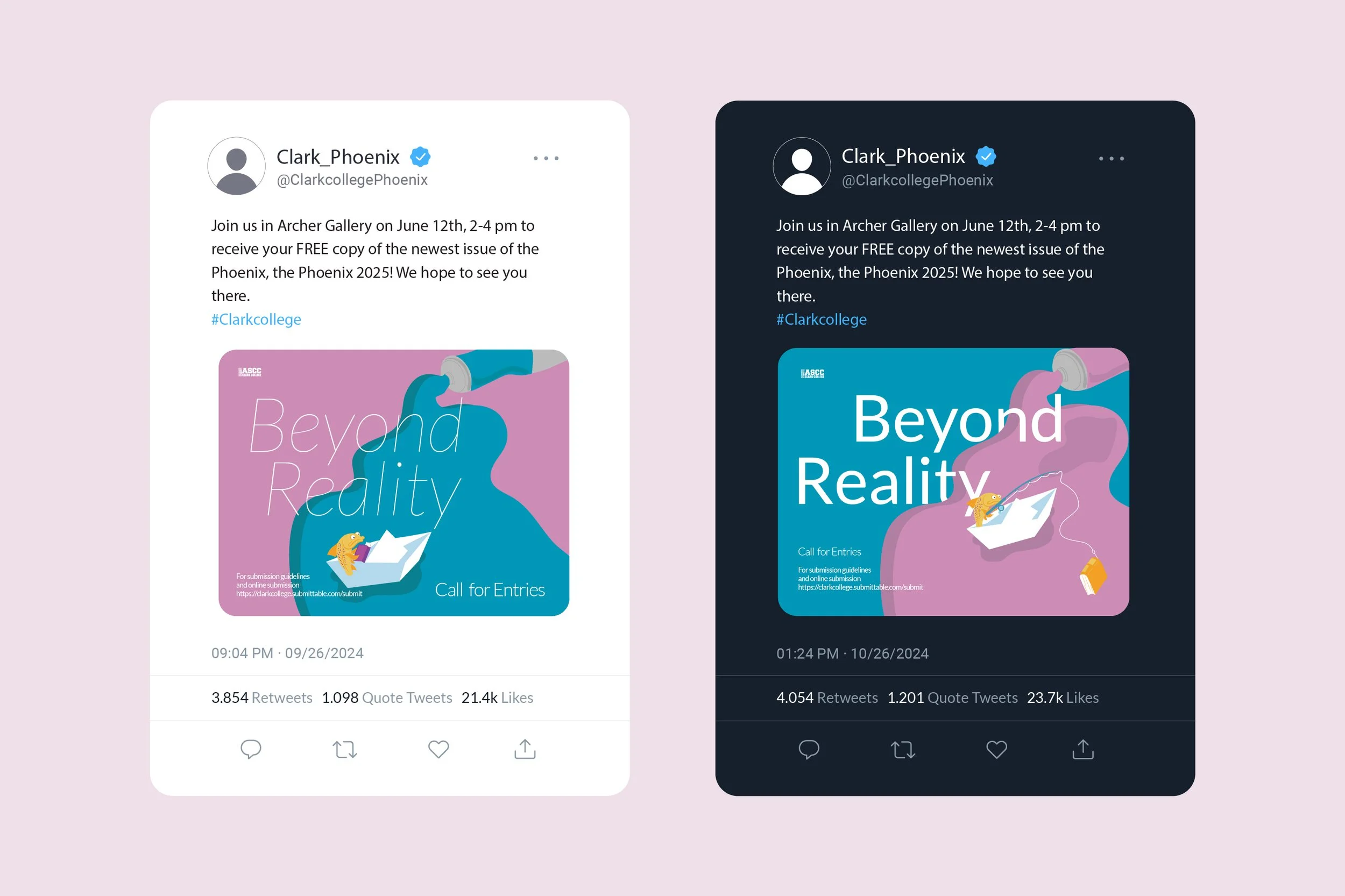 This section highlights social media designs. The first project is an Instagram post created for Forma Living, a modern furniture brand, showcasing new arrivals and contemporary interior looks. The second piece is a Twitter announcement promoting the upcoming Phoenix event, designed with energetic graphics to capture attention quickly. The final design is a playful promo graphic featuring the event’s guest speaker.